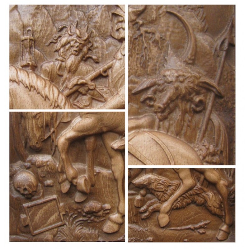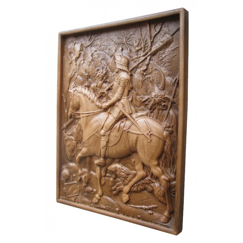 Дърворезба "Конник, смърт и дявол"
