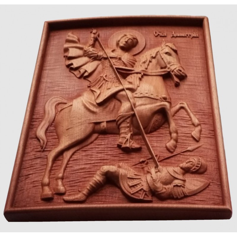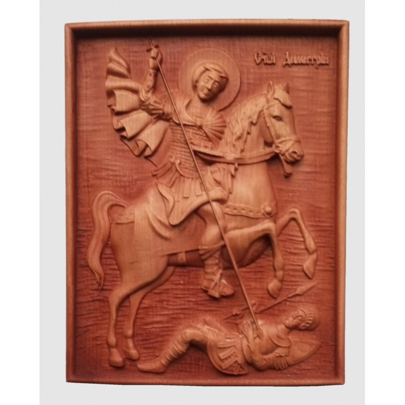 Дърворезба ”Св. Димитър” Размери 30 х 24 х 3 см. Цена 46 € Материал бук Може да поръчате размер по Ваше желание